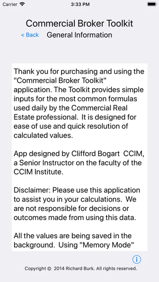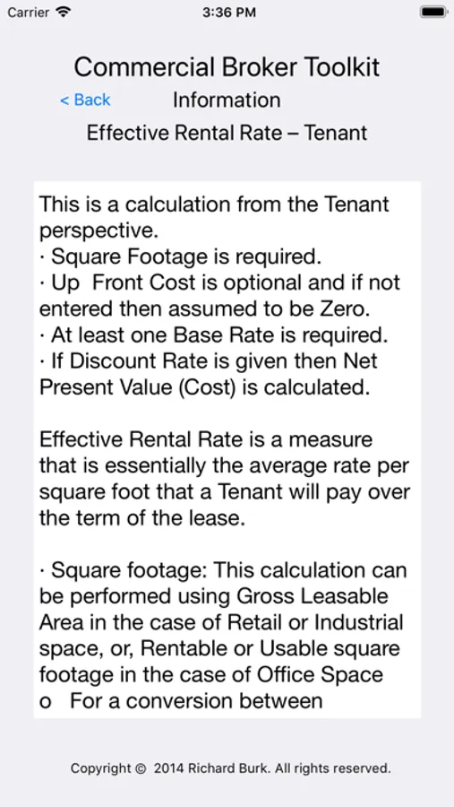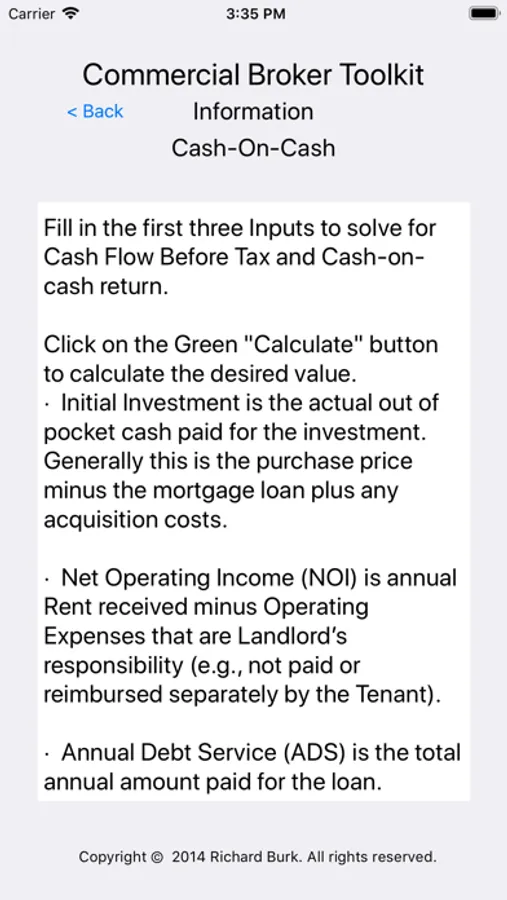If you are involved in any aspect of Commercial Real Estate (brokerage, lending, leasing, management, etc.) you will find the Commercial Broker Toolkit extremely useful and easy to use. We designed the app to provide simple, easy to follow inputs for all of the important calculations and formulas used in Commercial Real Estate.