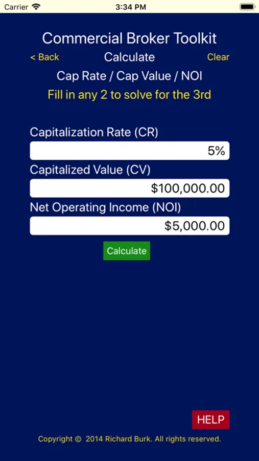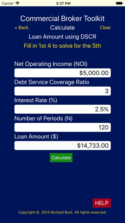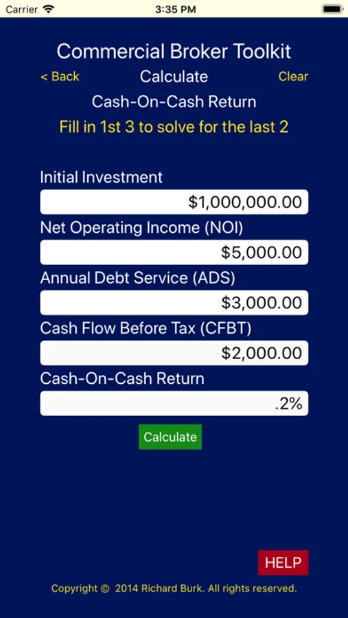 Each screen is designed with easily identifiable inputs to calculate the result you’re looking for. If you’re not quite sure there is a “HELP” button that will take you to an explanation of how to do the calculation as well as a brief explanation of what this calculation is typically used for.
