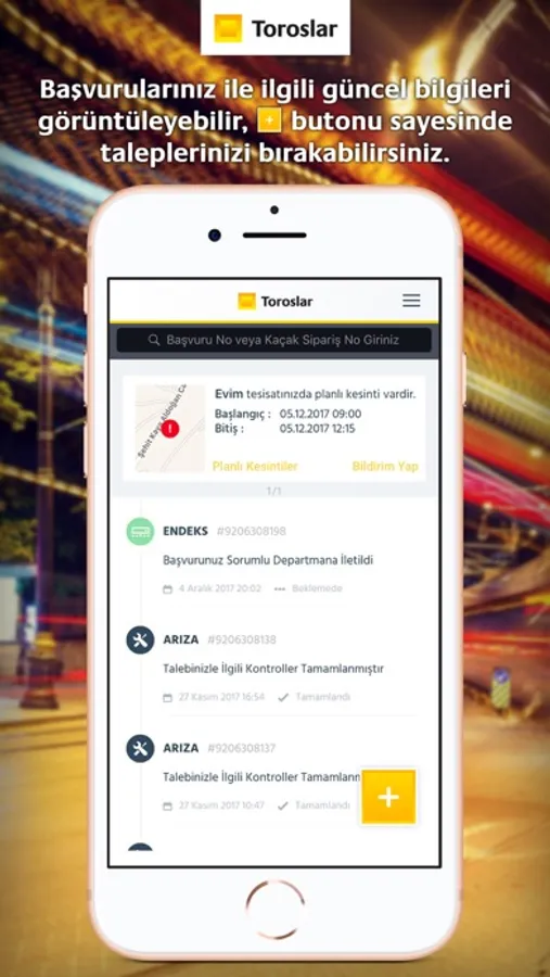 Bölgenizi veya tesisatınızı ilgilendiren planlı kesintilerden önceden haberdar olabilir, tüm taleplerinizi kolayca bırakabilir ve yaptığınız başvuruların son durumlarıyla ilgili anlık bilgi sahibi olabilirsiniz.
