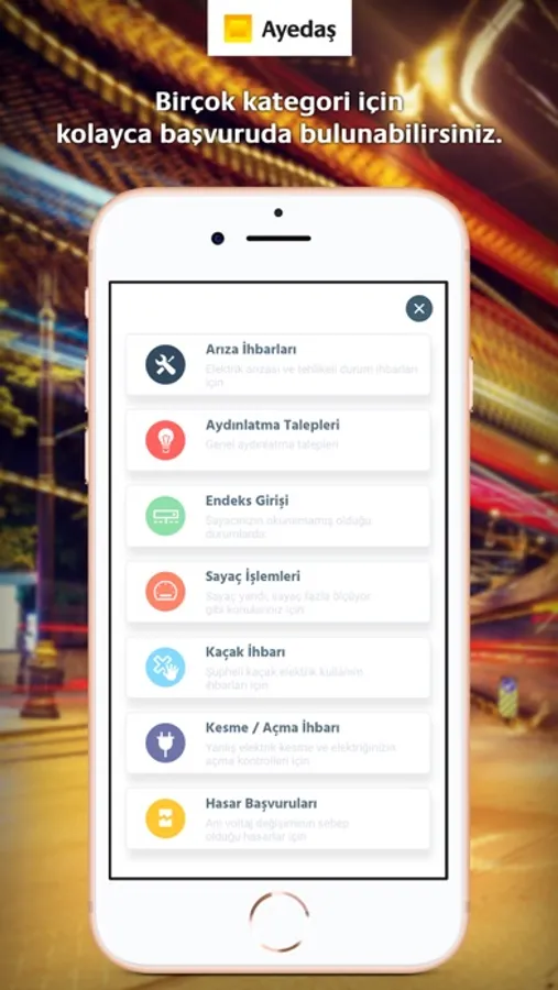Ayedaş 186 uygulaması ile kolayca arıza kaydı oluşturabilir, bölgenizdeki tüm planlı kesintiler hakkında detaylı bilgi sahibi olabilir, başvuru numarası ile sorgu yapabilirsiniz. Ayrıca, kesme-açma işlemleriniz için talep oluşturabilir, endeks girişi yapabilir, sayacınızla ilgili arıza ihbarında bulunabilir ve yaptığınız taleplerle ilgili güncel bilgileri anlık olarak takip edebilirsiniz.