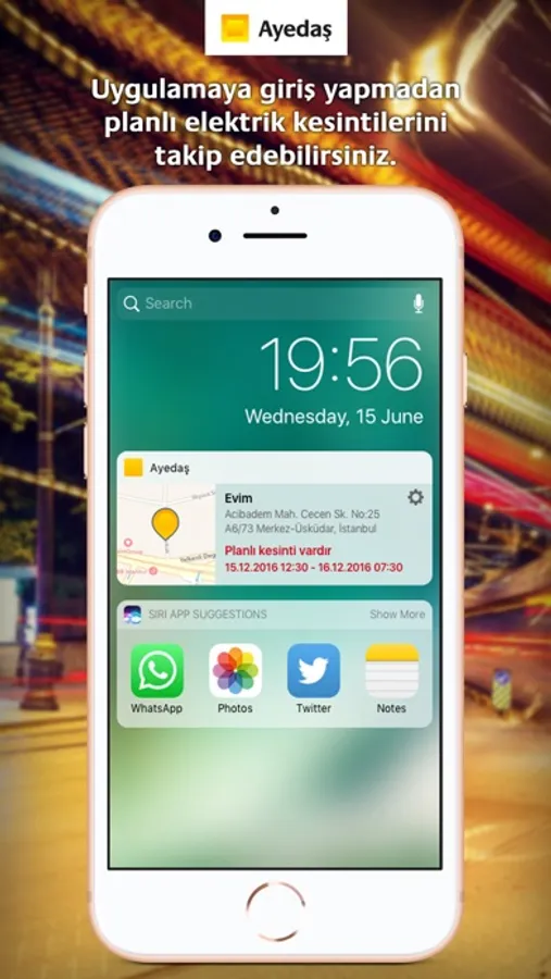 Uygulamayı açmadan widget bildirimleri ile tesisatınızla ilgili ya da belirlediğiniz bir adresle ilgili planlı kesinti durumunu kontrol edebilirsiniz.