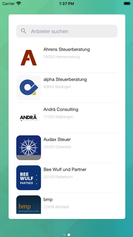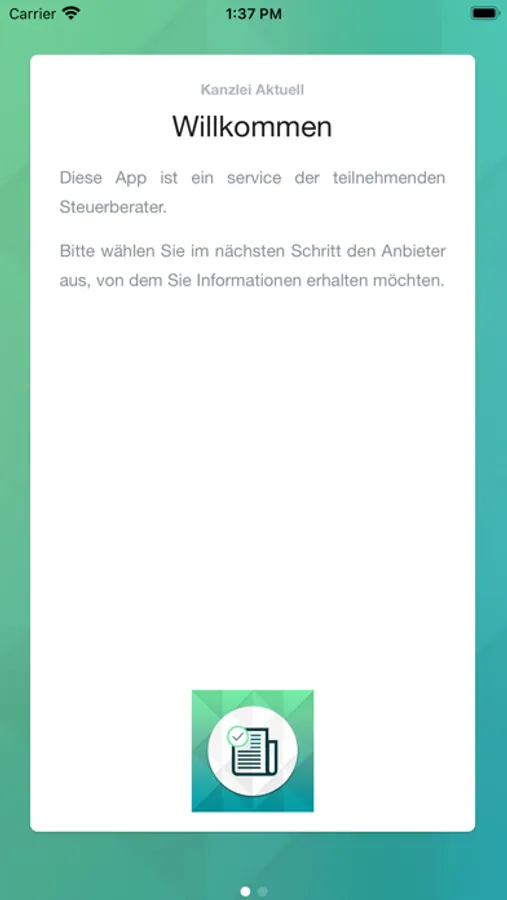 Diese App ist ein Service der teilnehmenden Steuerberater. Nach dem Start der App können Sie sich für einen Anbieter entscheiden, von dem Sie Informationen erhalten möchten.