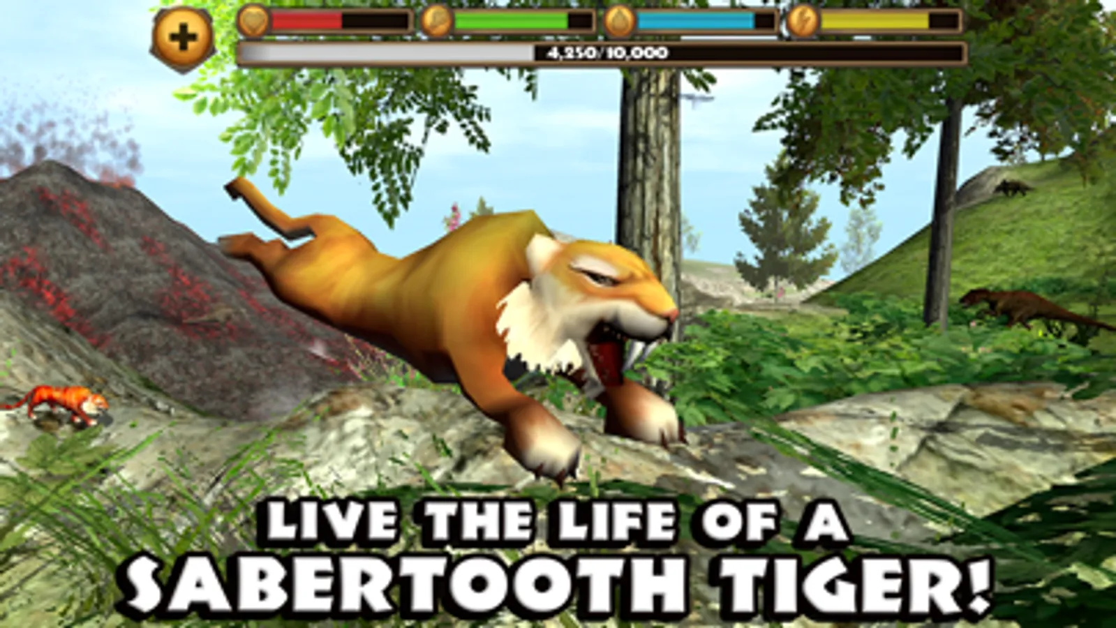 Download the Sabertooth Tiger Simulator to experience the thrilling life of the most deadly feline predator planet Earth has ever seen, the Sabertooth Tiger!