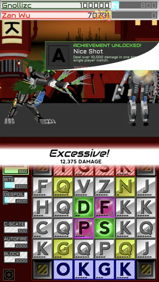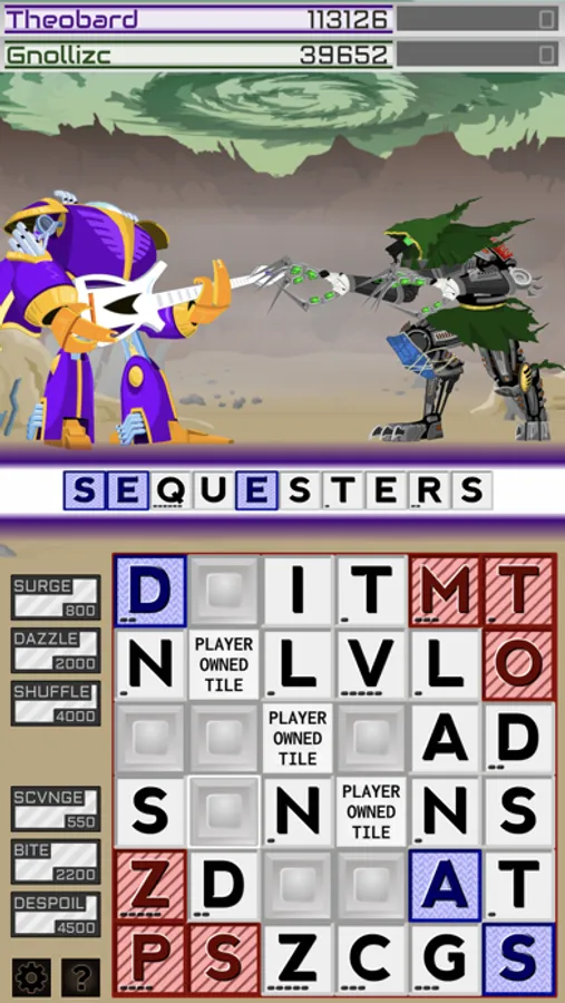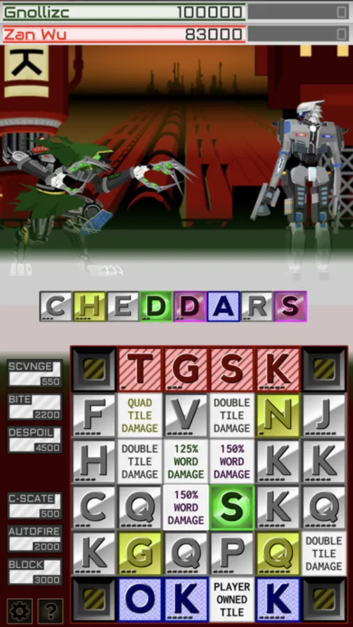 Obliteracy's core gameplay mixes the familiar mechanics of tile-based word games with a variety of bonuses, board configurations, and contenders to create a fresh, dynamic challenge in every match. Players choose from one of eight different playable challengers, each with distinctive strengths, weaknesses, skills and play styles. Battles are fought using wildly varying tile sets, each with its own configuration of powerup tiles that can boost damage and energy gain. Each character has their own unique set of special attacks which, properly used, can instantly turn the tide of a pitched struggle.