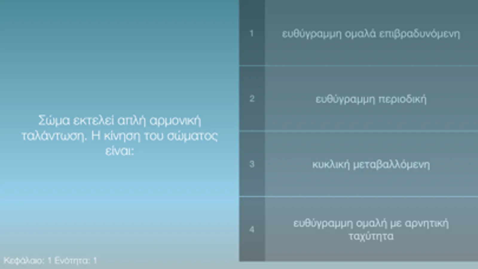 Η θεωρία του πρώτου κεφαλαίου της φυσικής κατεύθυνσης Γ' Λυκείου σε 100 ερωτήσεις κλειστού τύπου.