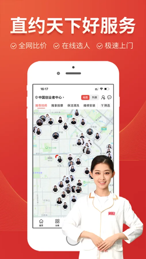 到位致力于为广大用户提供标准化、高品质的各种上门服务,同时向广大服务商家共享千万级用户,做连接人与服务的大平台,引领都市人的新生活方式。