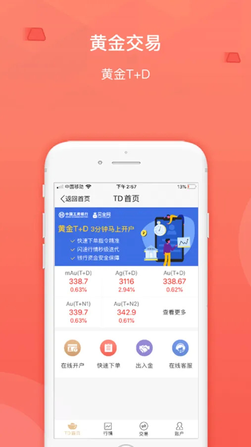 实物金条:以上海黄金交易所金价为基准,金价实时透明,金条最低工费3元/克起,掌上下单,顺丰次日送货到家