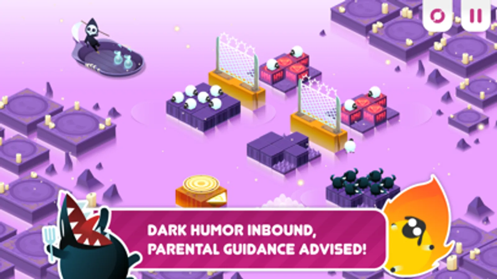 It plays similar to classic counting games with dark humor where you need to cross a road or river, and can't have specific combinations of sheep, wolves, etc on the same raft. Here though the results are intentionally filled with gore and blood (unless you turn it off in the settings). It's a funny, dark math puzzle game.