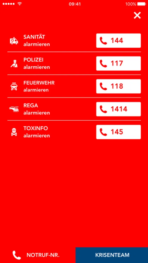 • direkt wählbaren Notrufnummern der Blaulichtorganisationen (Polizei, Feuerwehr, Rettungsdienst usw.)