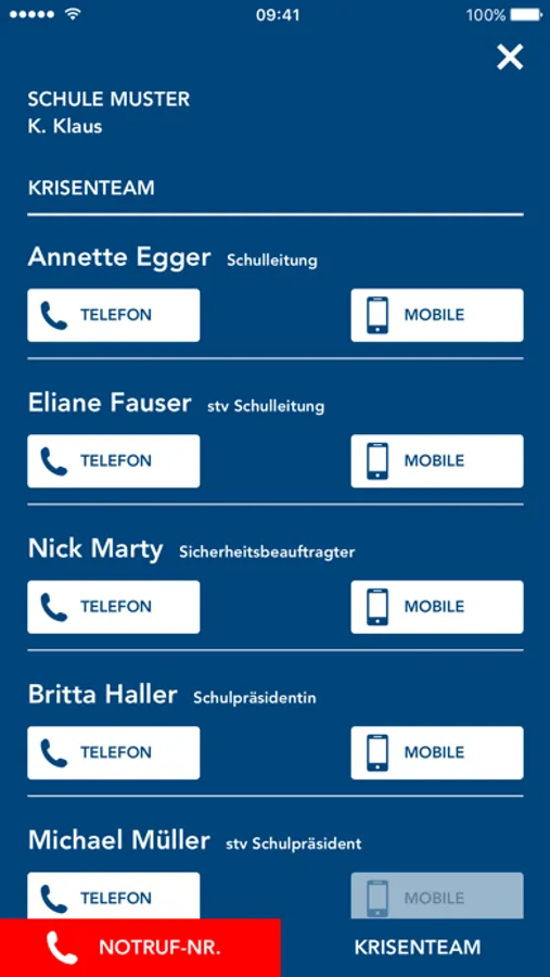 • bei Ausflügen, Reisen usw. die im Notfall vor Ort wichtigen Rufnummern in der App speichern und so ein «auswärtiges Krisenteam» zusammenstellen