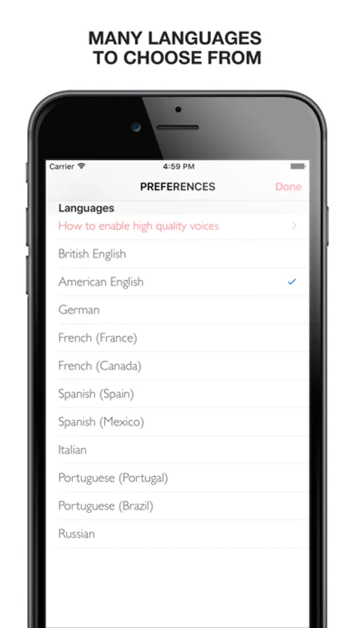 Currently, we support English (British, American, Australian), Spanish, French, Chinese, Japanese, German, Italian, Portuguese, Russian, Polish, Danish, Swedish, Norwegian, Finnish, Arabic, Turkish, Korean and Hindi.