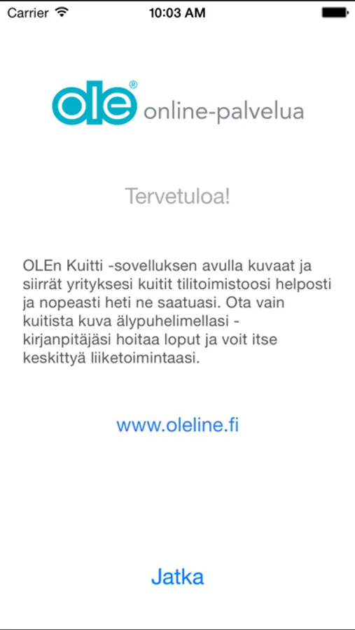 OLEn Kuitti -sovelluksen avulla kuvaat ja siirrät yrityksesi kuitit tilitoimistoosi helposti ja nopeasti heti ne saatuasi. Ota vain kuitista kuva älypuhelimellasi - kirjanpitäjäsi hoitaa loput ja voit itse keskittyä liiketoimintaasi.