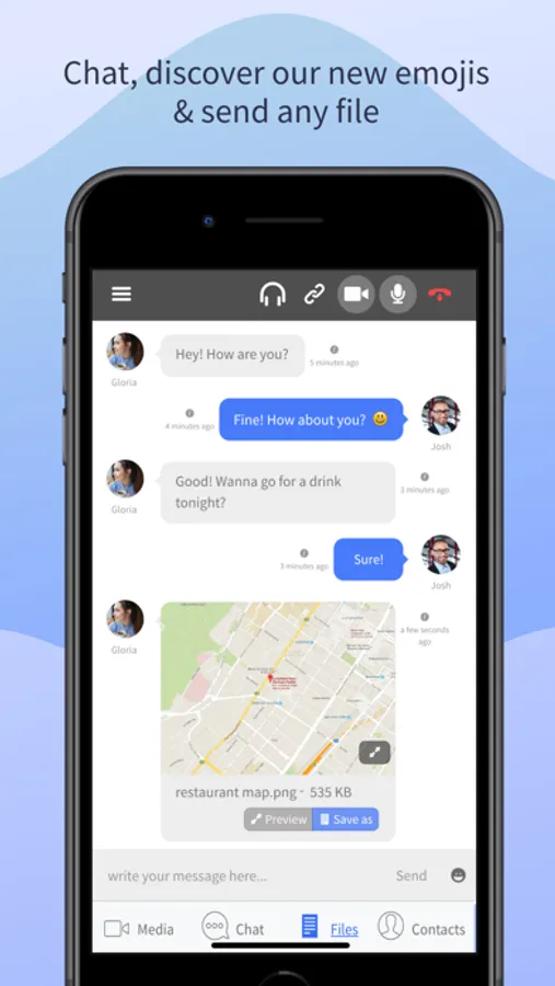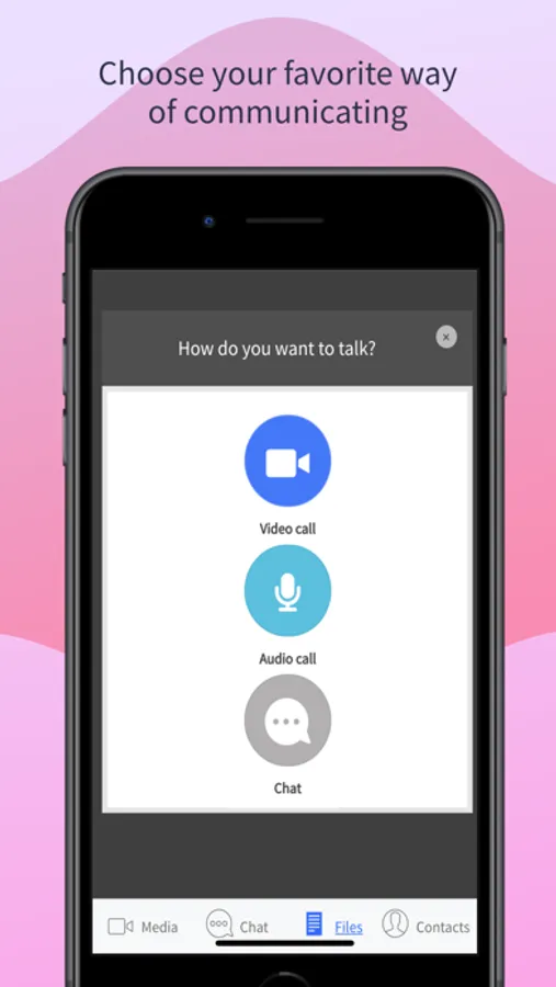 * Video Call or Audio Call and Chat and File sharing. All in one secure service.