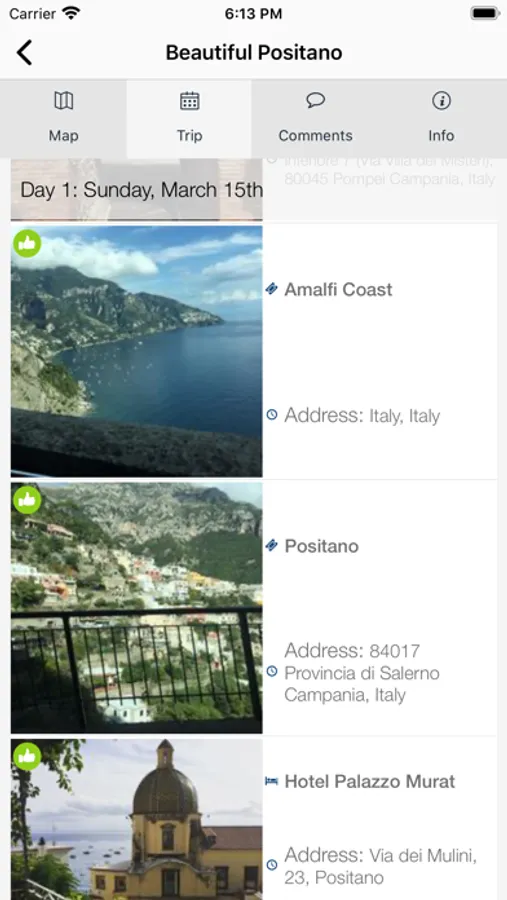 • RATINGS (thumbs up!) and COMMENTS (eat the tacos!) can be added to your itinerary to advise others taking your trip.