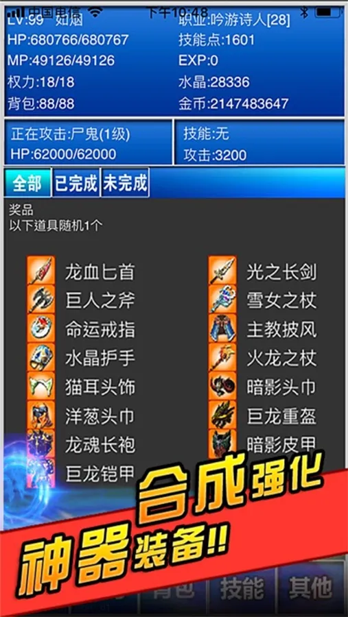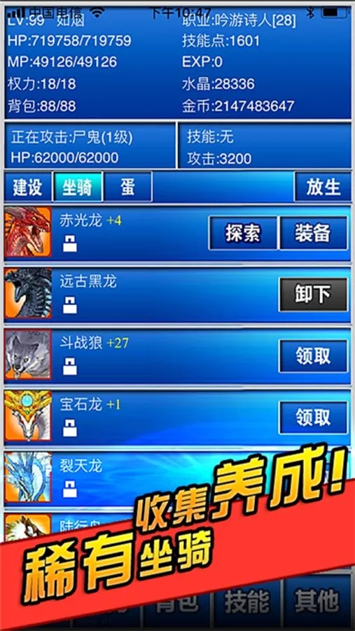 操作简单:任务奖励一键领取,宠物坐骑一键孵化,轻松获取最终幻想顶级神兵,混沌世界剑指苍穹