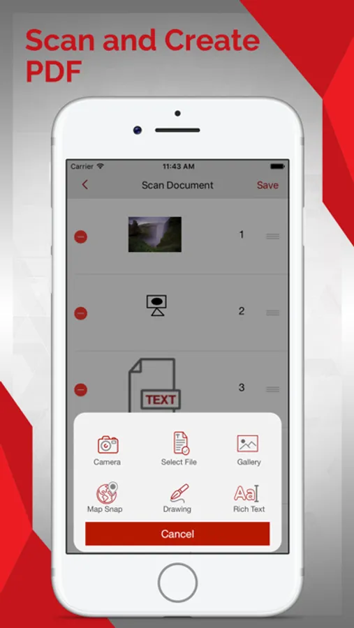 Just Take image or document save it as pdf