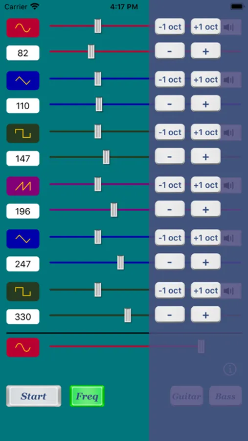 - In -1 / + 1 Octave button, it can set the frequency value of -1 / + 1 octave from the current value.