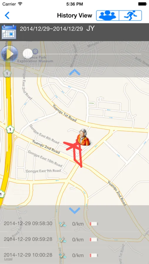 If tracker is in continuous mode , user can see detail tracks in history view.