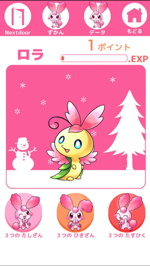 1問正解するごとに1ポイント獲得し、一定のポイントがたまると、キャラクターが進化していきます。