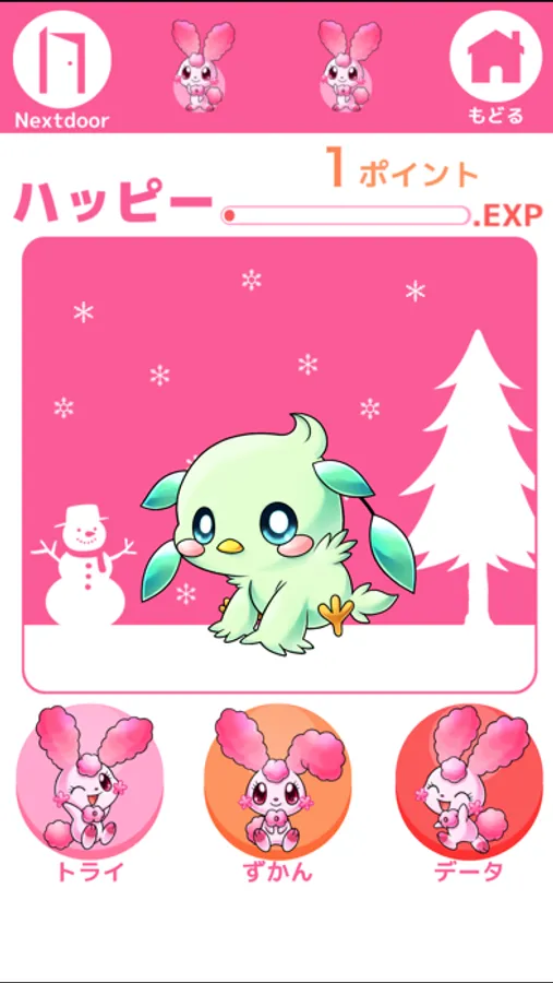 1問正解するごとに1ポイント獲得し、一定のポイントがたまると、キャラクターが進化していきます。