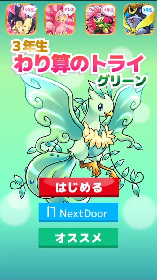 三年間で習う割り算の計算をゲーム感覚で楽しく訓練できるように考えたアプリです。
