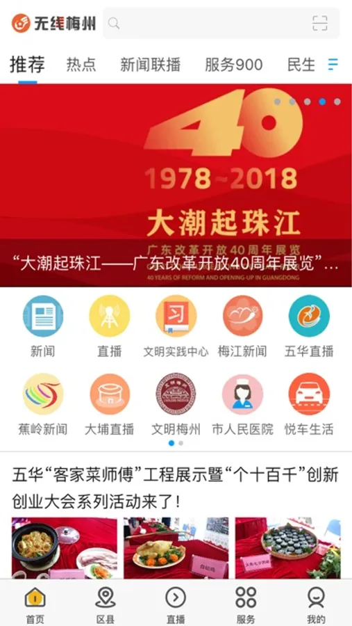直播:梅州市广播电视台2个电视频道,2个电台频道的节目直播;