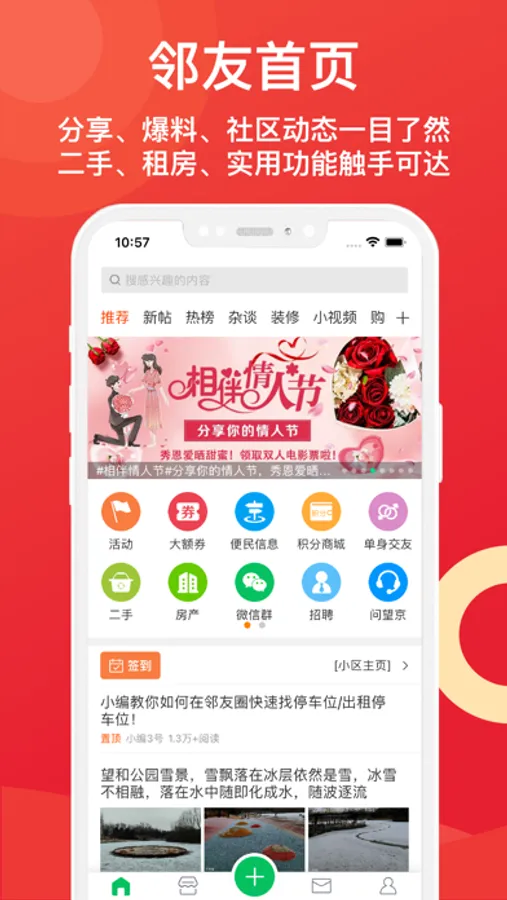 生活分享爆料,同城相亲交友,周边租房二手,招聘兼职查询,乐园门票美食优惠,尽在邻友圈。