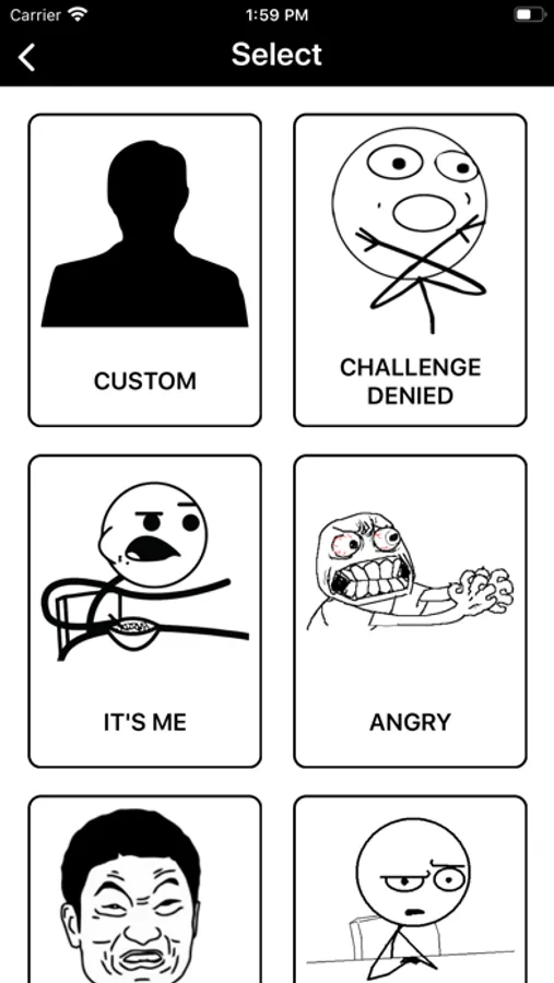 - Simply select template for meme
