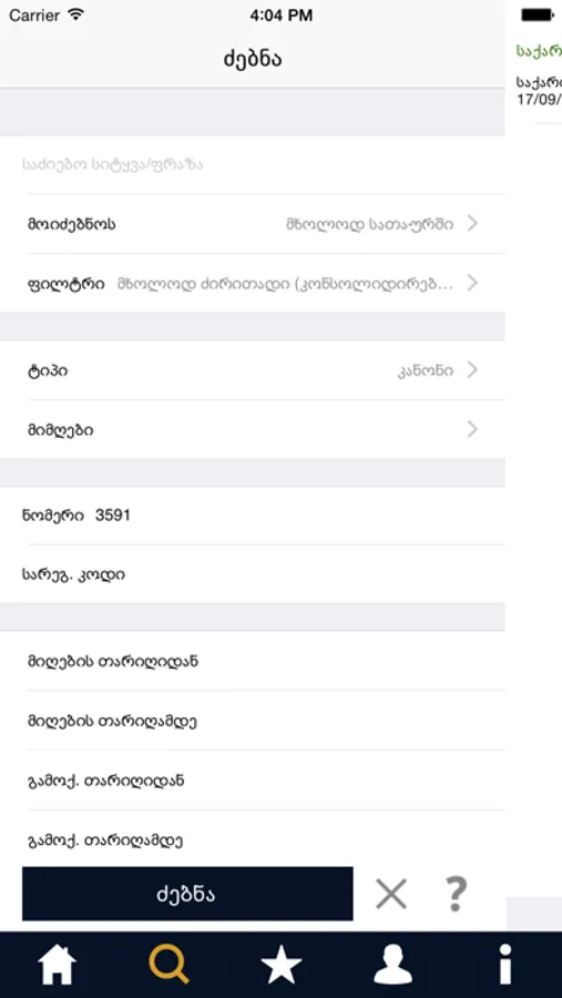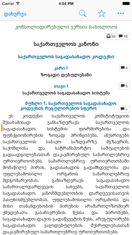 The Legislative Herald of Georgia (‘Matsne’) is a legal entity under public law (LEPL) within the governance of the Ministry of Justice of Georgia. ‘Matsne’ offers almost a complete database of Georgian primary and secondary legislation. Users can access any consolidated normative act, including the history of changes at any stage, also can make comments and add documents to favorites for offline viewing.