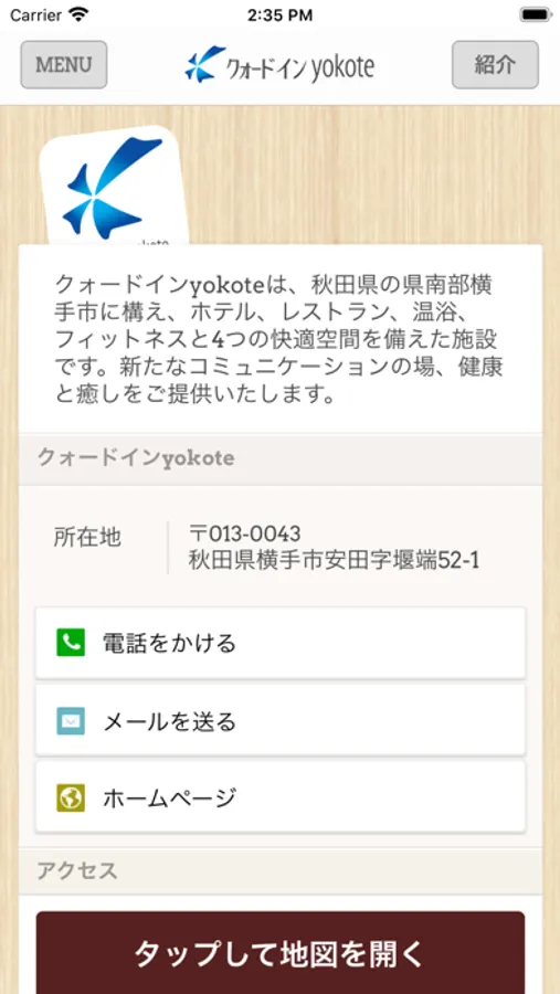 クォードインyokoteは、秋田県の県南部横手市に構え、ホテル、レストラン、温浴、フィットネスと4つの快適空間を備えた施設です。新たなコミュニケーションの場、健康と癒しをご提供いたします。