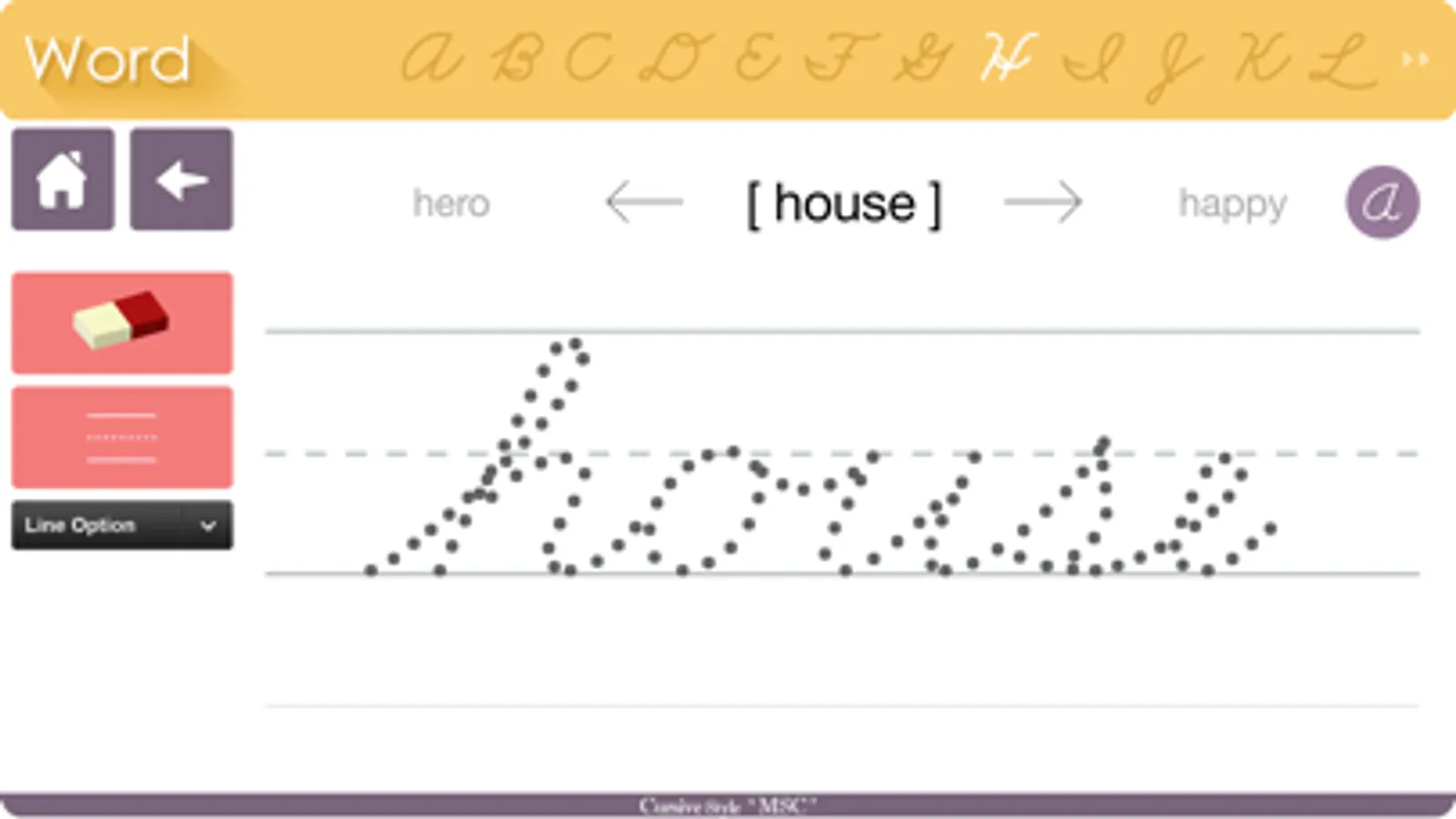 However, we guarantee that this specific application would be the ONLY ONE to provide the opportunity to exercise natural writing skills regarding the connectivity from a letter to another in cursive script.