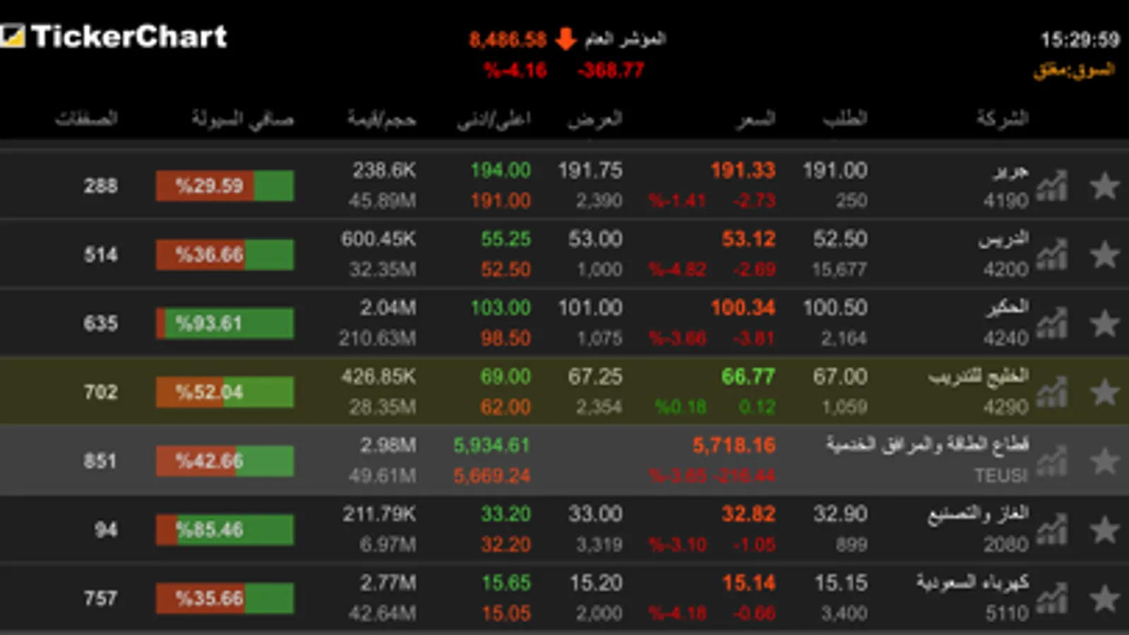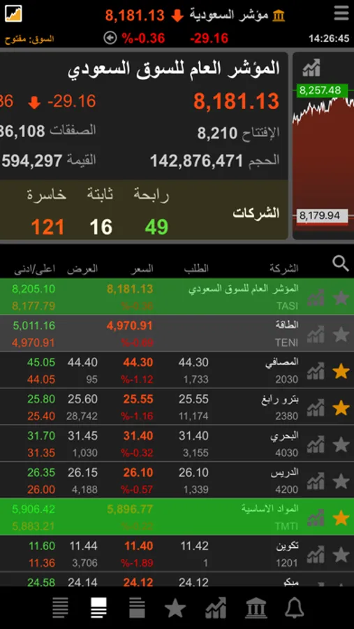- متابع سوق سريع و بسيط يحتوي جميع شركات السوق.
