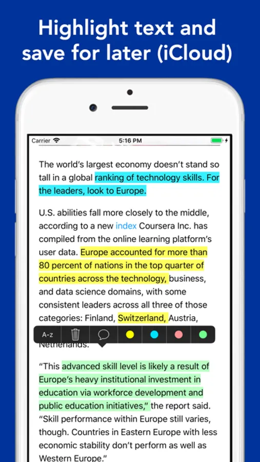 - Export your highlighted articles to PDF and view in other apps such as DropBox, Box, Drive, EverNote, Email