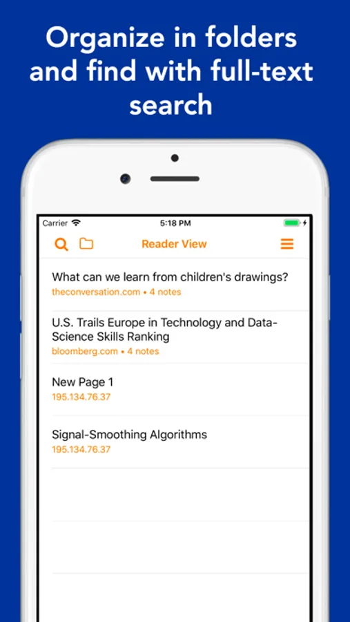 - Full Text Search of all your articles from the list, or Find Text inside each article