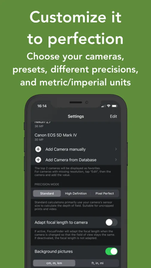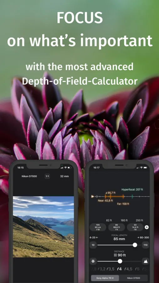 FocusFinder is a professional Depth-Of-Field calculator that works for every camera. With quick data entry, intuitive visualizations, and advanced features like precision modes, FocusFinder is the best tool to improve your photography or videos. Almost every camera available is already included, and we will add yours within 48h if it's missing.