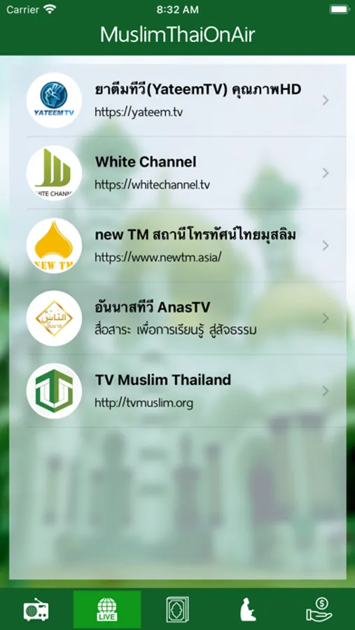 - รับชมช่องรายการทีวีของมุสลิมต่าง ๆ ได้ผ่านแอพโดยตรง