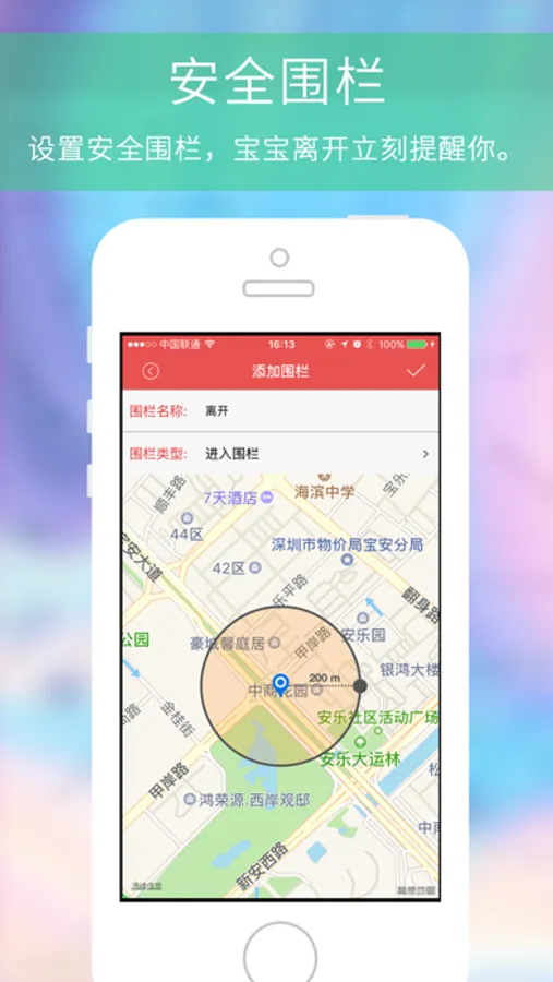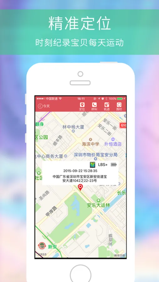精准定位 无论宝宝上课还是郊游,您只要打开手机APP,就知道宝宝在哪儿;
