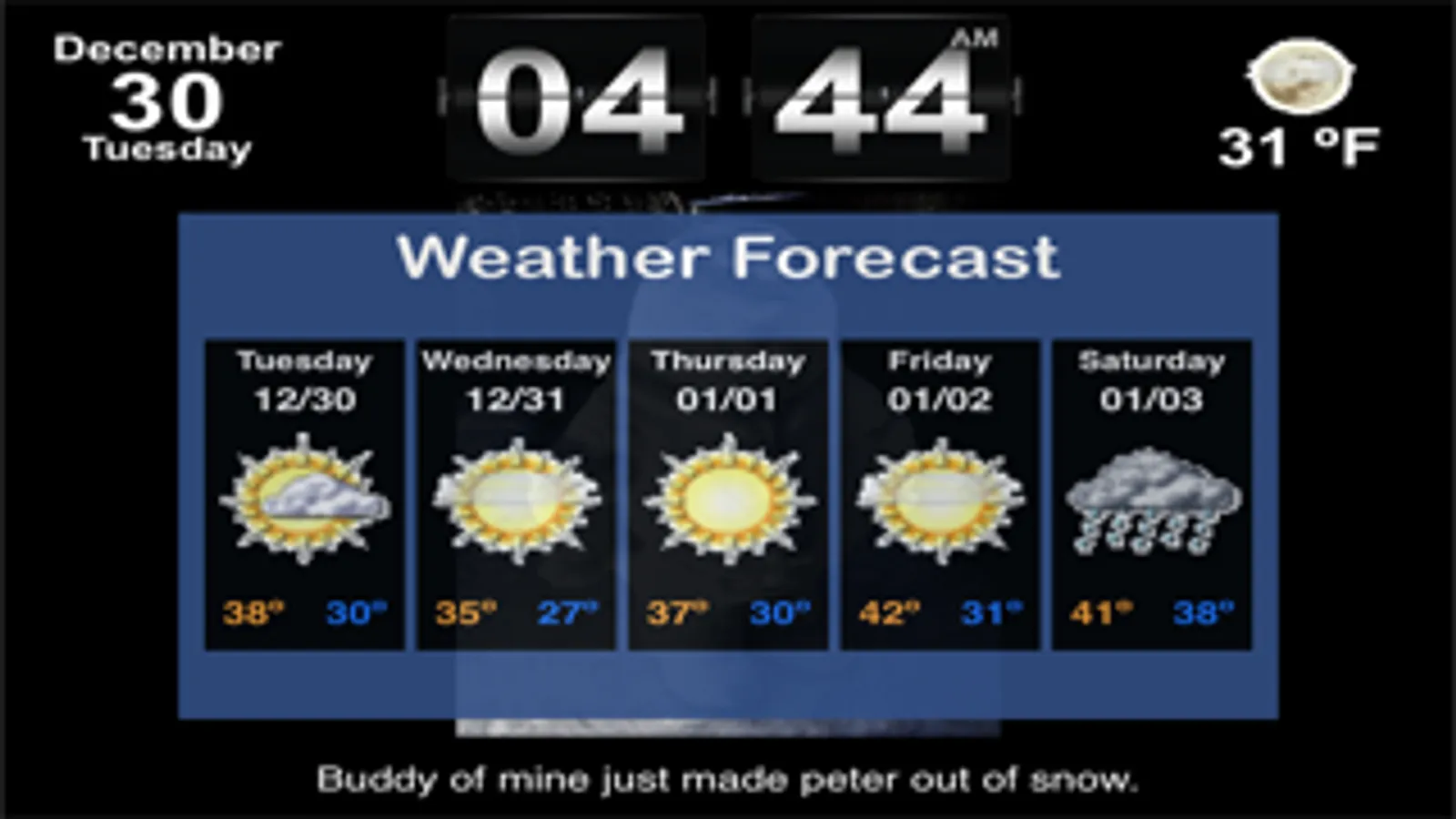 • Displays the Weather, Temperature, and Slideshow of your own photos.