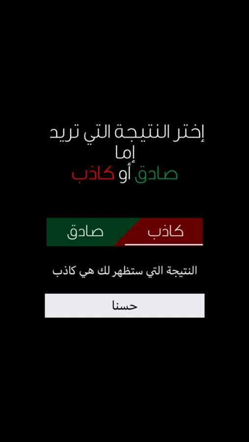 هذا التطبيق للتسلية فقط و لا يعطي أي نتائج حقيقية لكشف الكذب - This app is intended for entertainment purposes only and does not provide true lie detection functionality.