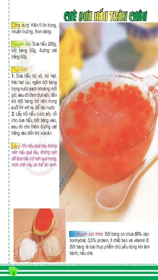Các loại chè thường hấp dẫn người ta bởi hương vị thơm ngon và hình thức đẹp mắt. Nhưng do chè có lượng đường và năng lượng cao, dễ dẫn đến béo phì nên đối với những người xem trọng sức khỏe thì đây quả thật là một vấn đề nan giải. Đặc biệt là đối với những cô gái thích làm đẹp, muốn duy trì vóc dáng thon thả của mình thì điều này lại càng khó hơn. Thật ra, không phải tất cả các món chè đều như vậy, chỉ cần ăn một cách có khoa học thì sẽ không ảnh hưởng gì đến vóc dáng. “Những món chè ít béo, đẹp dáng dễ nấu” chính là bí quyết trong mơ của bạn, đây là phương thức giúp bạn tránh được nguy cơ bị béo phì do ăn uống không có khoa học mang lại, những nguyên liệu được sử dụng trong các loại chè này đều là những loại ít béo, ít đường, chứa nhiều chất xơ, nhiều nước, như: bí đao, táo, khoai tây, quả tì bà… Bạn có thể thoải mái thưởng thức mà vẫn giữ được vóc dáng thon thả. Để giúp độc giả có thể hiểu rõ hơn về việc giảm béo, ở mỗi loại chè đều có phần “thông tin dinh dưỡng”, giúp bạn giải quyết được những khó khăn trong vấn đề này.
