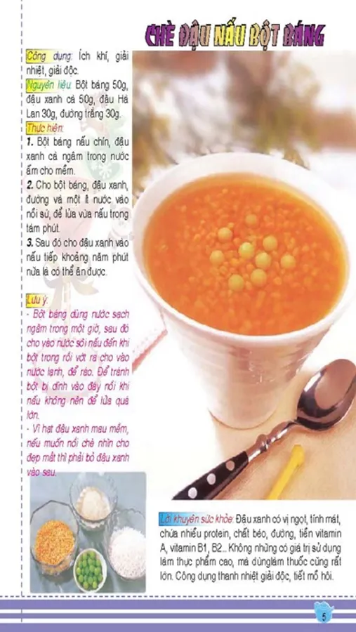 Khi khí hậu nóng bức, các loại chè có nhiều lợi ích cho cơ thể: làm cho cơ thể cảm thấy dễ chịu, đồng thời có khả năng ngăn ngừa tình trạng mất nước. Sau bữa cơm, chúng ta ăn một ly chè giải nhiệt, thơm mát không chỉ giúp cho tinh thần trở nên thoải mái mà còn làm cho mọi người xung quanh cũng cảm thấy vui vẻ và thân mật hơn. Quyển sách “Những món chè thanh nhiệt dễ nấu” giới thiệu đến các bạn 50 loại chè mang hương vị tuyệt vời khác nhau, phương pháp chế biến vừa đơn giản vừa dễ học. Khi có thời gian rảnh bạn nên tự mình dựa vào công thức và khẩu vị sao cho phù hợp để chế biến vài món chè dùng sau bữa cơm hoặc những lúc nghỉ ngơi, dù ăn ít nhưng hương vị không bao giờ phai, khiến cho bạn lúc nào cũng nghĩ đến hương thơm tuyệt vời ấy.