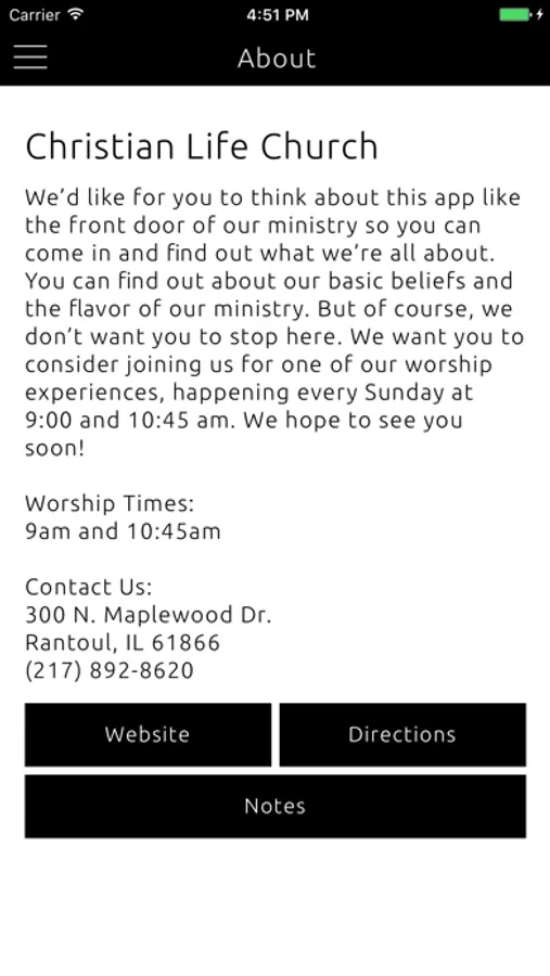 We’d like for you to think about this app like the front door of our ministry so you can come in and find out what we’re all about. You can find out about our basic beliefs and the flavor of our ministry. But of course, we don’t want you to stop here. We want you to consider joining us for a worship experience, happening every Sunday at 9:00am and 10:45 am. We hope to see you soon!