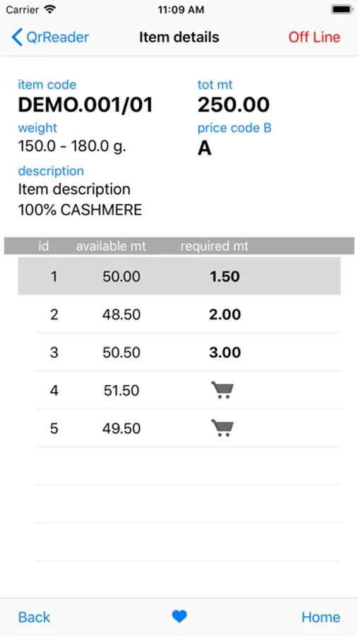 It gives informations about textile items availability reading the QrCode behind an item card.