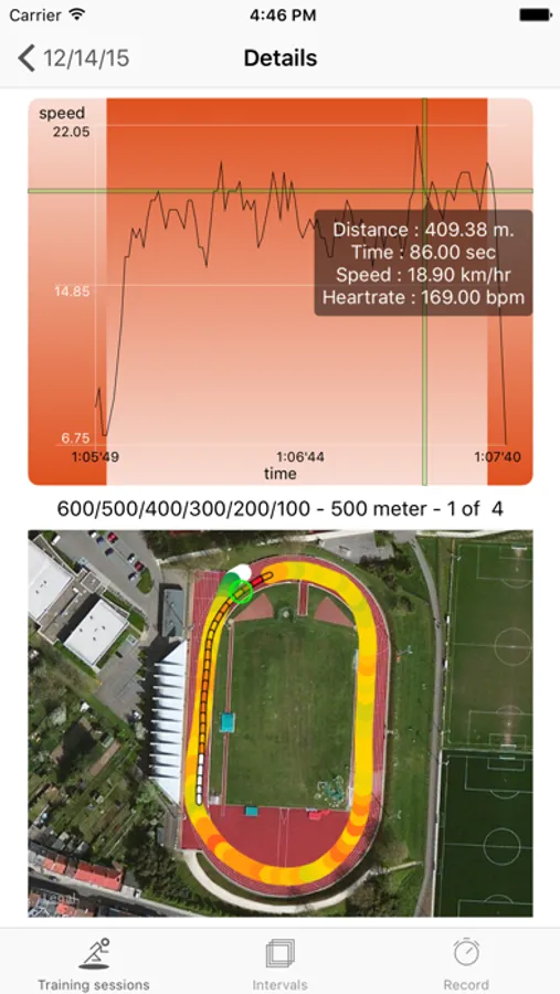 - Define the intervals you want to track : 60m, 120m, 150m, 300m... . Minimum start speed (to avoid flying starts screwing up your sprints), minimum elevation, minimum speed for an interval to be considered etc... .
