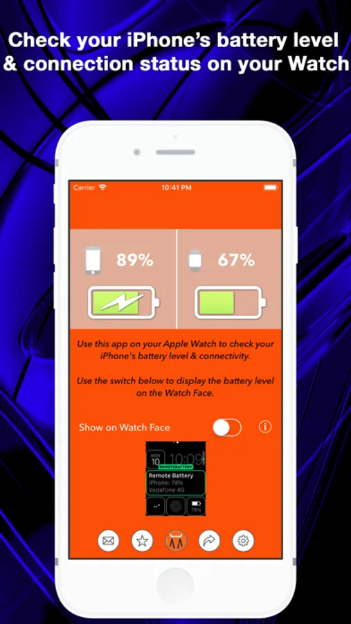 - Show your iPhone battery level and connection status on your Watch Face using Complications [with purchasable upgrade]!