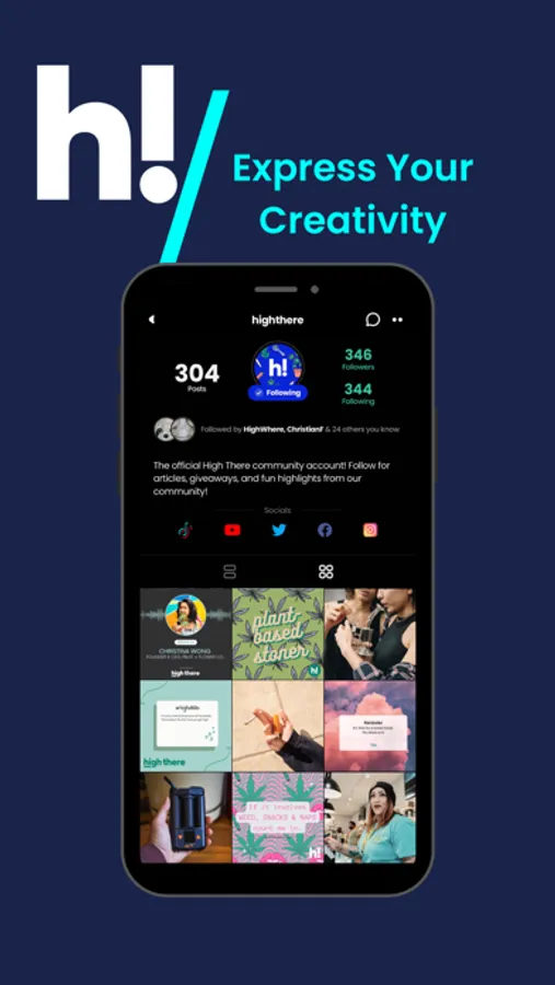 Lastly, build a creative profile that shows who you are to the High There community. Find a username that suits you best, add an image of yourself and update your description to let users know why you’re on the app. You’ll also be able to add social links, see your followers and who you’re following on your profile.