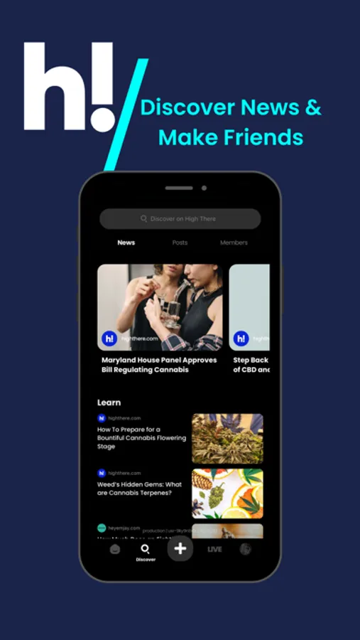 Discover is the place to find new creators to follow. We’ll show you users based on location, interests, who’s trending right now on High There and who just joined. Discover is a powerful tool to help you find like minded people to build your cannabis community.