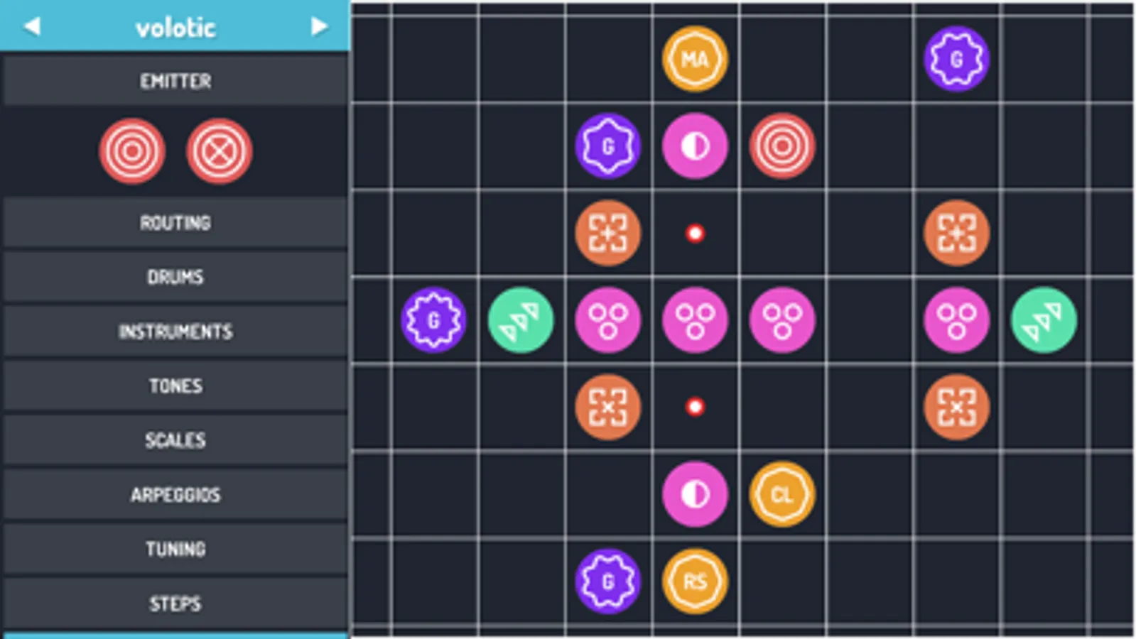 Volotic is an experimental nonlinear sequencer by artist Scott Garner. What does that even mean? It means a fun way to create songs for everyone, with no musical experience required.