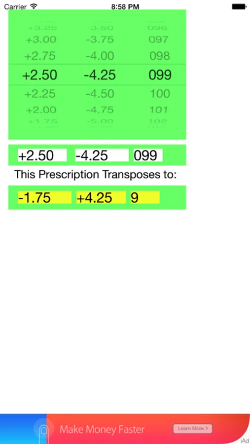 Handy and convenient app that transposes any eyeglass prescription from minus cylinder form to plus cylinder form, or from plus cylinder to minus cylinder. Helpful for optometrists, ophthalmologists, opticians and their staff. Avoid errors in prescription transmission, or use to double check transposition accuracy.