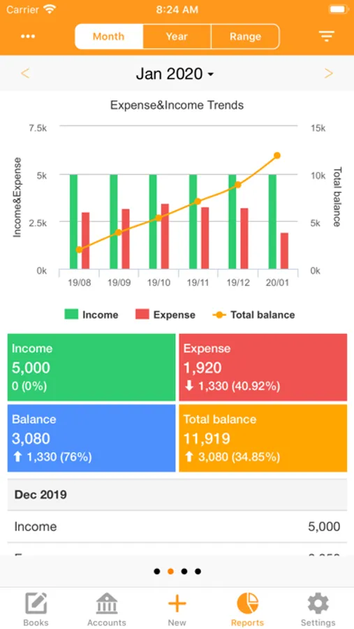 Powerful chart analysis function, let you easily understand your own spending ratio, trend and financial status